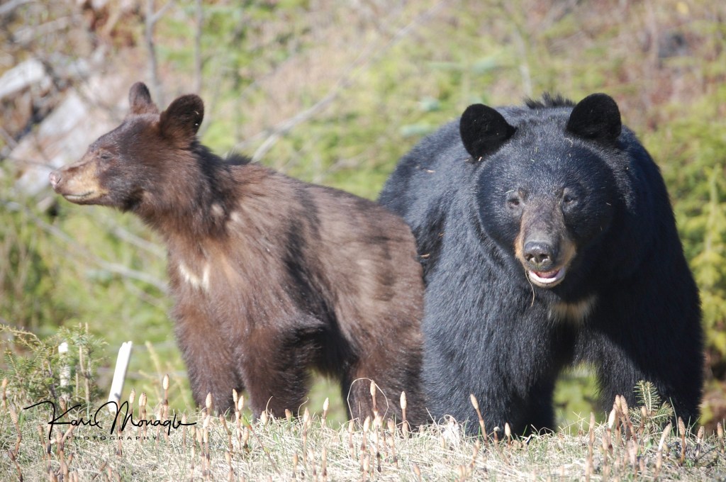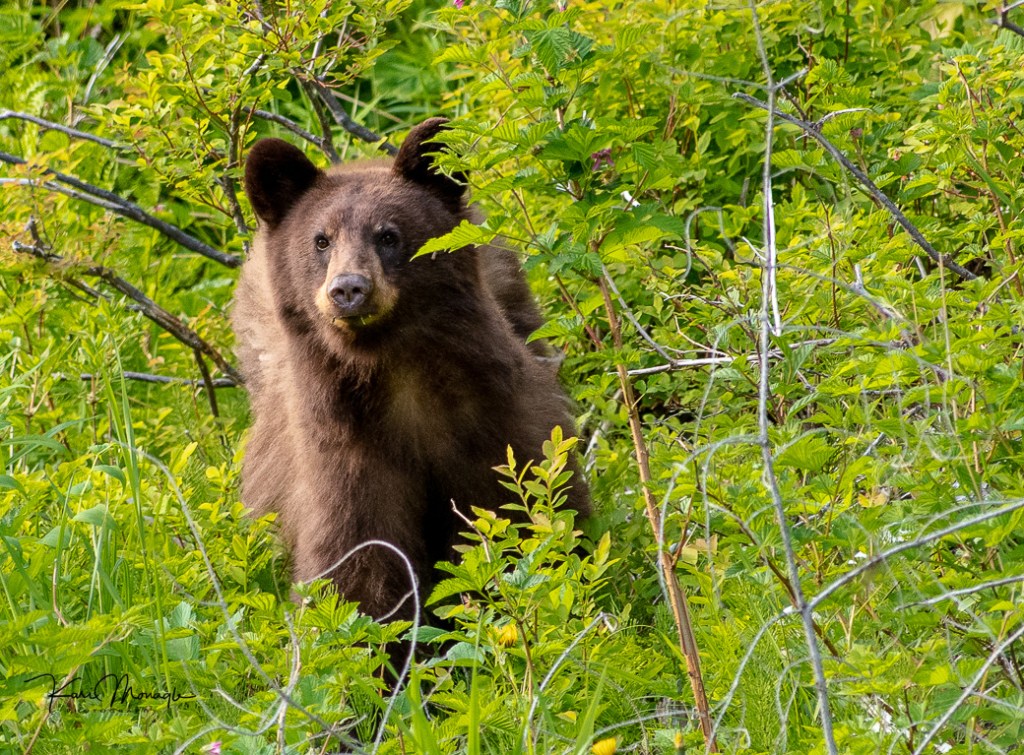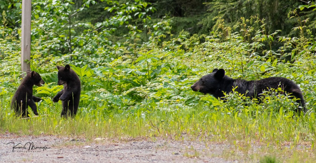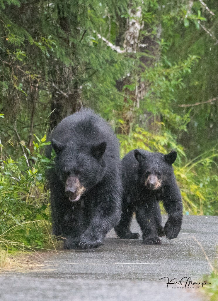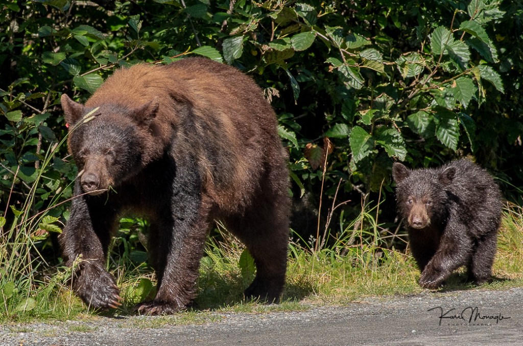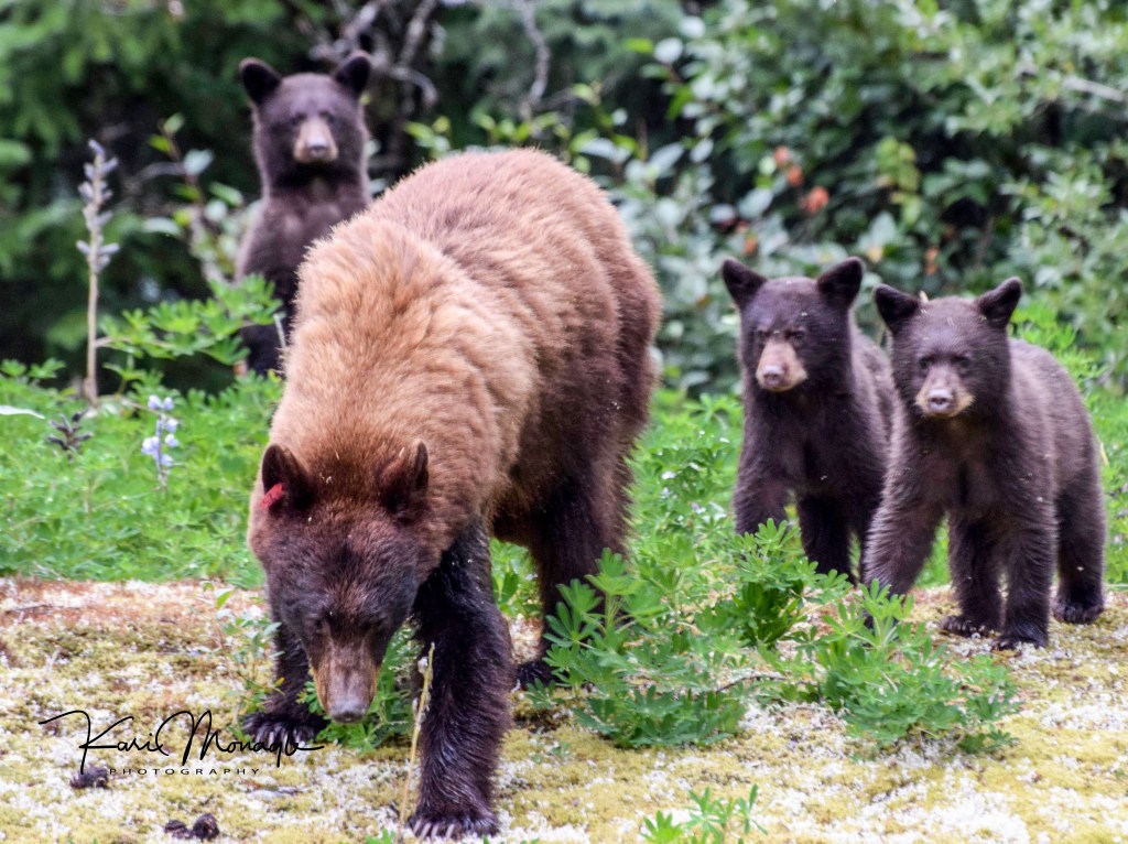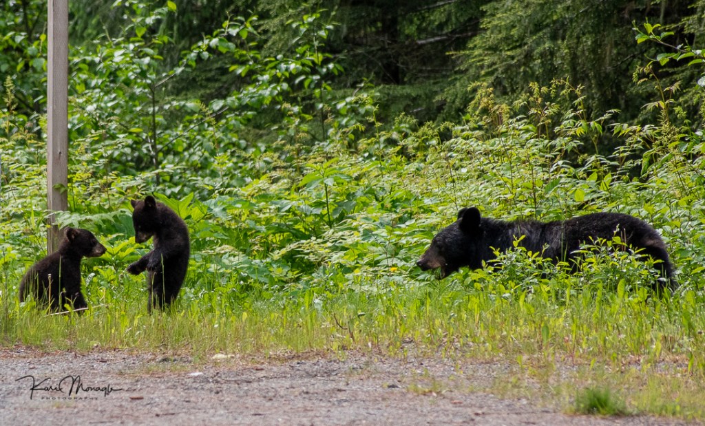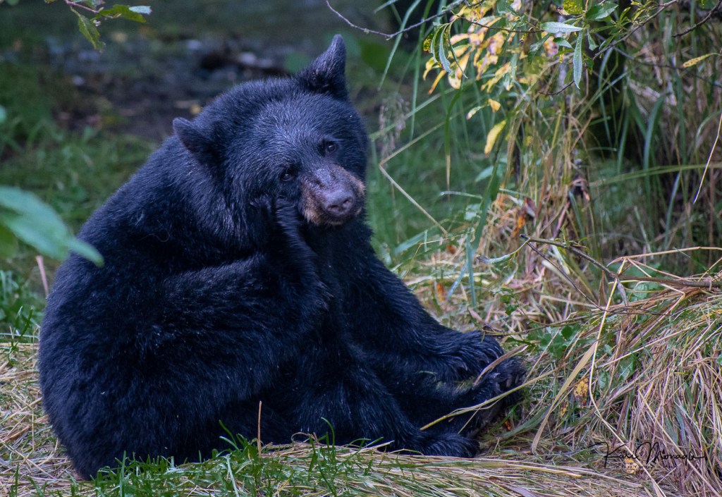 The following photos are all Black Bears even though not all their coats are black. Black Bears come in a wide variety of colors, even within the same family. A sow can have different colored cubs. One of the favorites is a bear known locally as Nikki. She has been around the Mendenhall Glacier for almost 20 years and has had many sets of cubs.