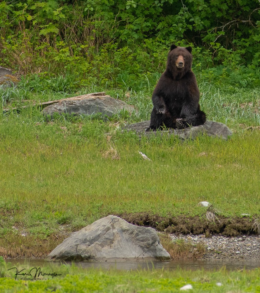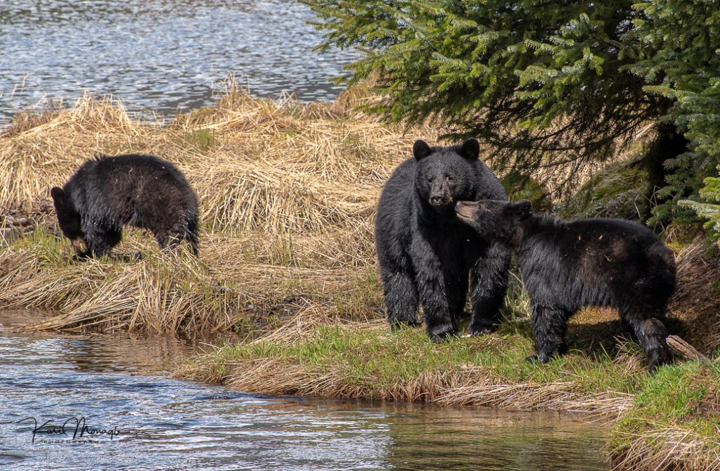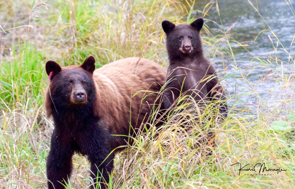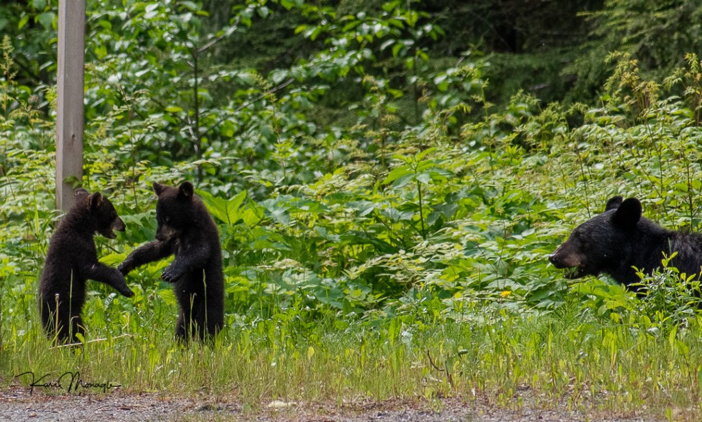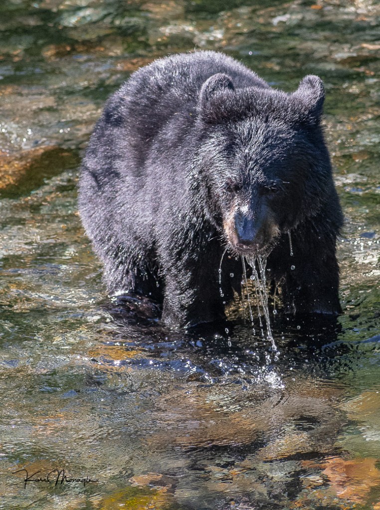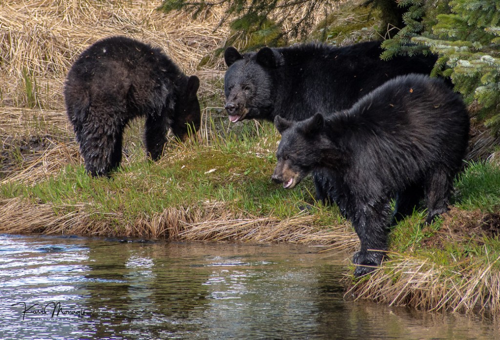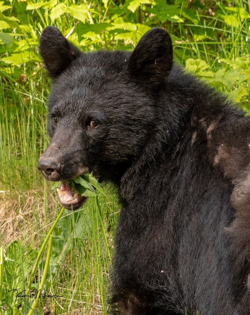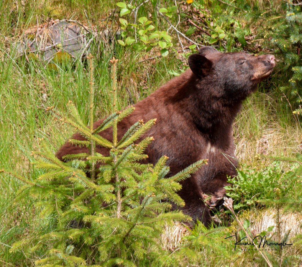 The following photos are all Black Bears even though not all their coats are black. Black Bears come in a wide variety of colors, even within the same family. A sow can have different colored cubs. One of the favorites is a bear known locally as Nikki. She has been around the Mendenhall Glacier for almost 20 years and has had many sets of cubs.
