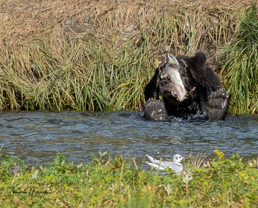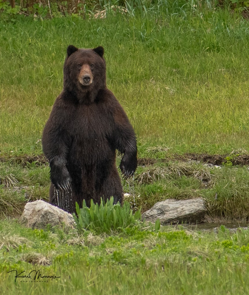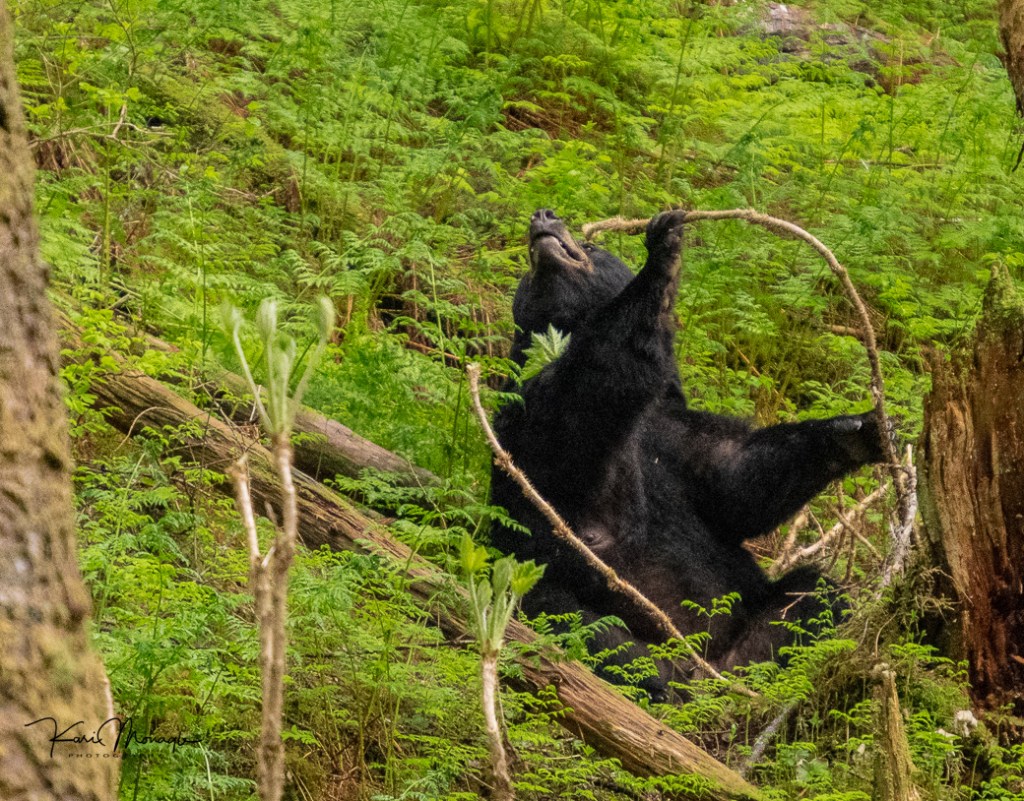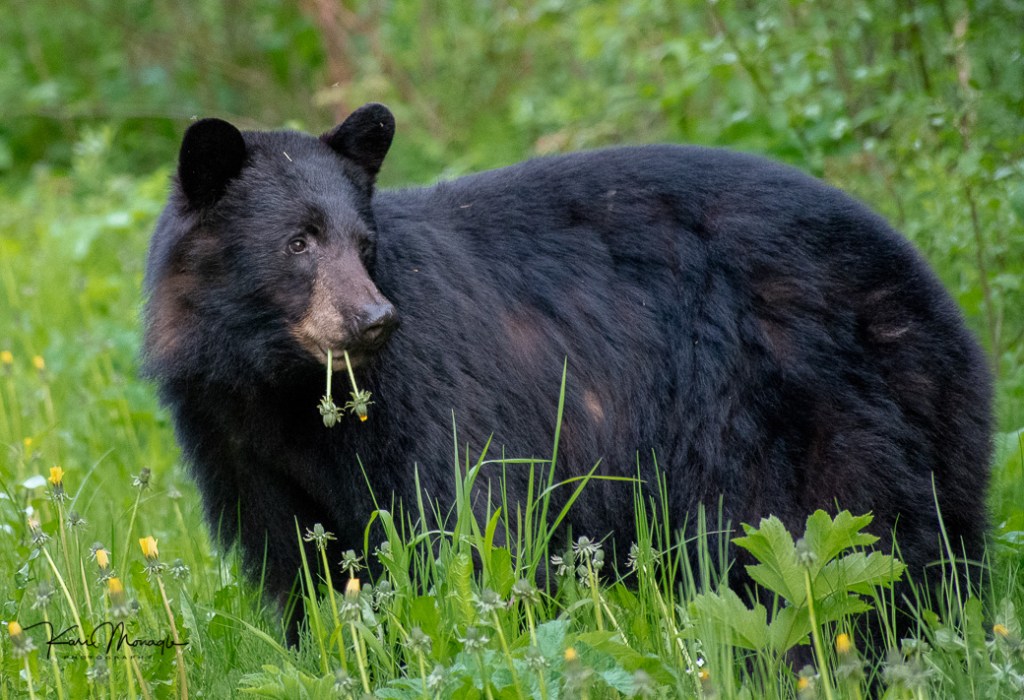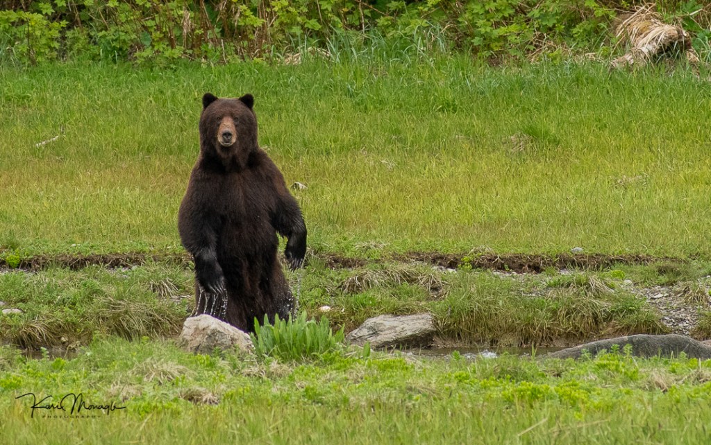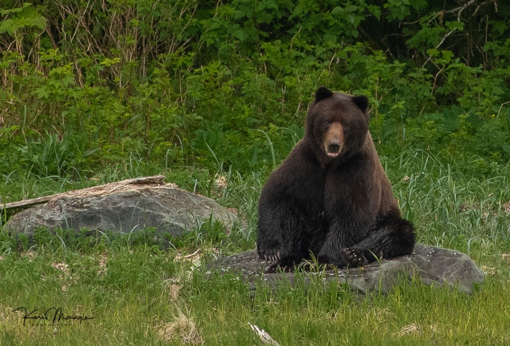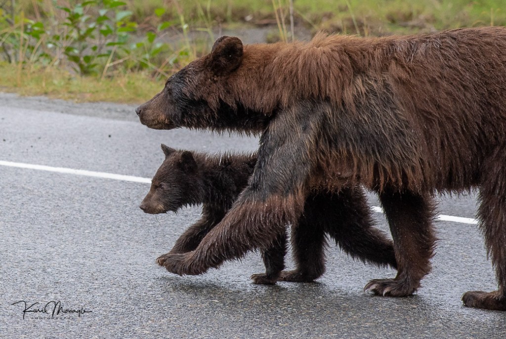 The following photos are all Black Bears even though not all their coats are black. Black Bears come in a wide variety of colors, even within the same family. A sow can have different colored cubs. One of the favorites is a bear known locally as Nikki. She has been around the Mendenhall Glacier for almost 20 years and has had many sets of cubs.